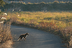 『狩りをするホンドギツネ』です。秋の群馬の生きもの(ほ乳類)の写真になります。写真素材としてご利用いただけます。